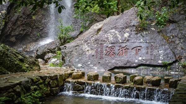 三折瀑是 雁荡山 驰名中外的自然景观,系同一山溪水南向三越重岩而成,形成上、中、下三个飞瀑,一瀑三折,奇雄险秀,堪称天下无双。郭沫若先生的“我爱中折瀑”题词,不仅表达了他对三折瀑的喜爱之情,也让其声名斐然。其中下折瀑位于景区入口不远处,乍看之下反倒是觉得民国时镌刻的“下折瀑”三个大字更具气势,不过水帘从峭壁上跌落而下,溅起一片水汽,让人有种如入仙境之感。