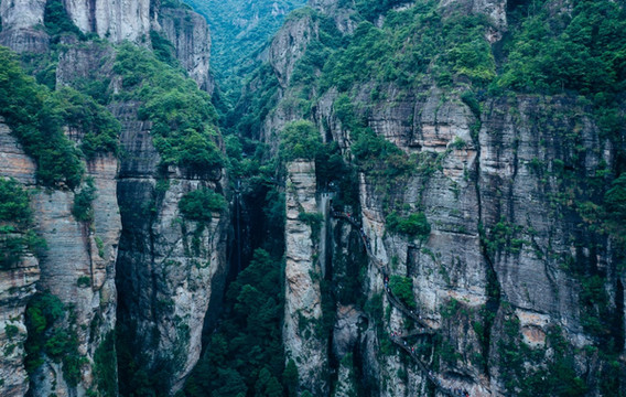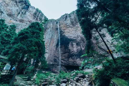 大龙湫在一处深邃的峡谷尽头,前往那里路过万佛崖和剪刀峰,最后还要穿过一片浓密的水杉林。