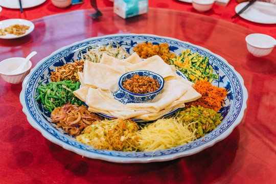 锡饼宴吃法类似北方的煎饼卷大葱。乐清一带在端午节才吃锡饼。如今已成了不分季节的人气的地方菜,受到北方游客喜欢。