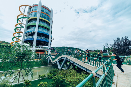 这是一个滑滑梯乐园,诸多滑道让人眼花缭乱,叹为观止。在这里很容易找到童心。