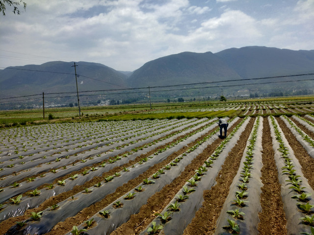 这边冬季种豆和蒜,收成后就插秧或种烟叶(原来覆膜种植的都是烟叶,还以为是什么蔬菜)