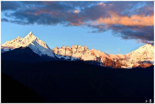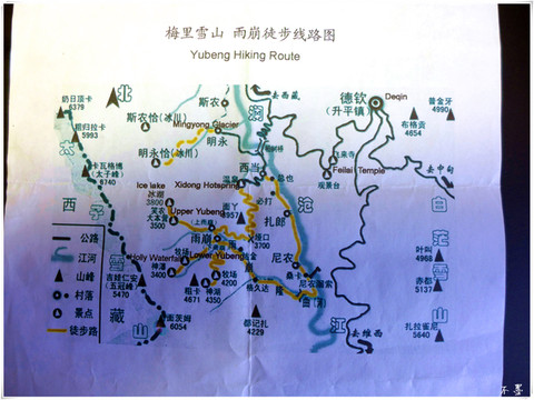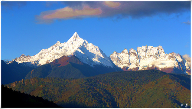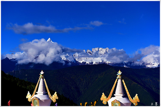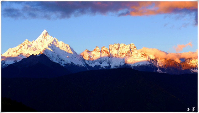 梅里雪山 有十三座山峰,被称为太子十三峰,最高峰卡瓦格博海拔6740米。在藏语地区,卡瓦格博自古以来受藏民崇拜。在藏民的心中,卡瓦格博峰是他们保护神的居住地。所以藏族同胞认为梅里雪山是不可以攀登的,人类一旦登上峰顶,神便会离开他们而去,灾难将会降临。