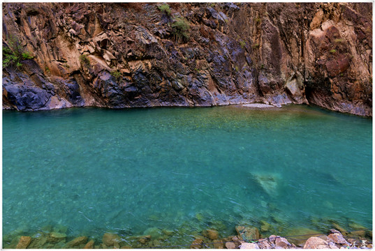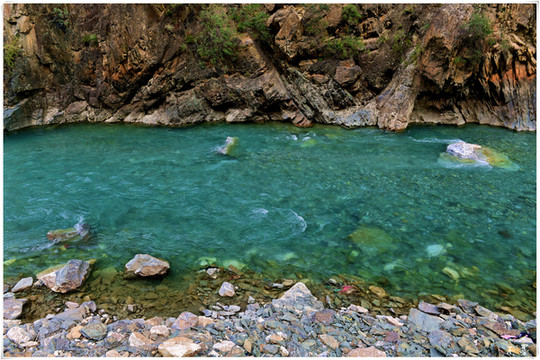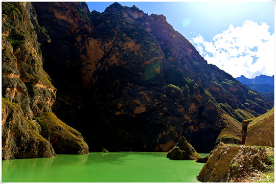 东旺河水是翠绿的,阳光下静静的如绿宝石嵌在谷底。