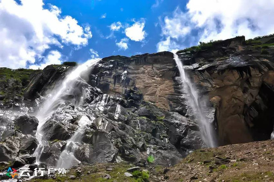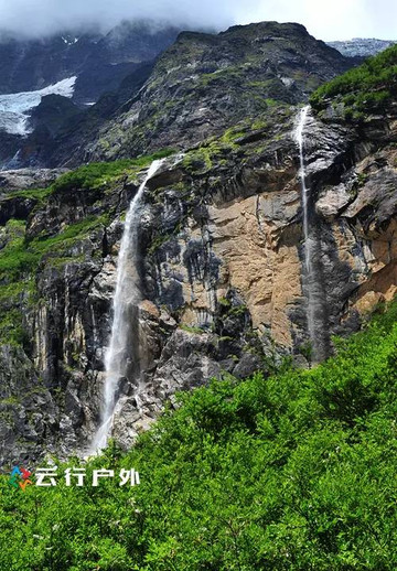 夏天的神瀑由于冰川大量融化,神瀑的水量更大了,从海拨3800多米的悬涯上垂直落下,真有一种飞流直下三千尺,疑似银河落九天的感觉。