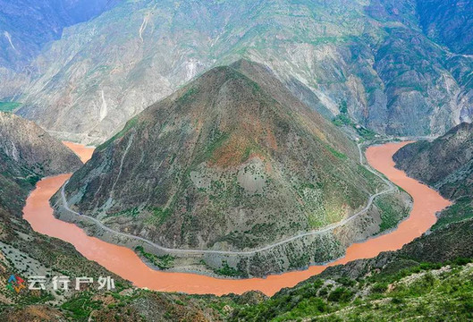 吃完中饭再从奔子栏前行二十分钟,便看到了金沙江大拐弯—月亮弯,因为夏天是雨季,很多泥水冲入江中,所以这个季节看到的月亮湾是红色的。