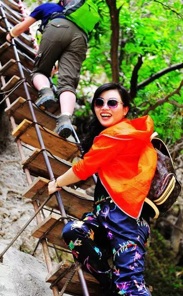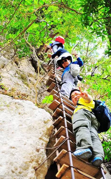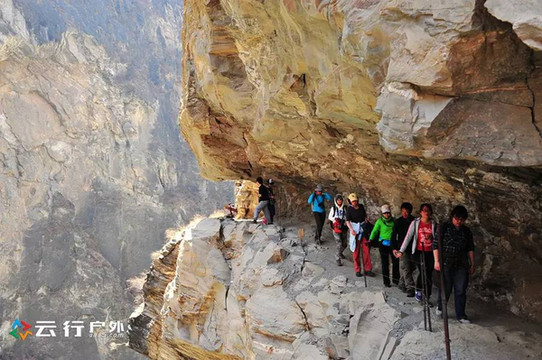 徒步悬涯边险峻栈道也是很刺激