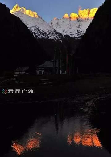 在雨崩下村不仅可以拍到金山,而且在村口前的一片水池,更可以拍到日照金山的神奇倒影,这也是雨崩唯一可以拍到雪山倒影的地方。