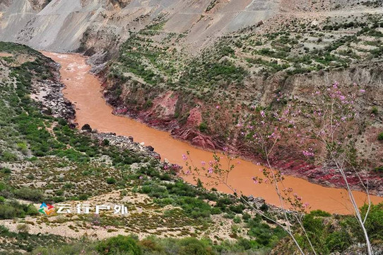 夏季雨水较多,澜沧江的水呈红色,它穿越整个澜沧江梅里雪山大峡谷,一直向东流,流到越南就变成了著名的湄公河。
