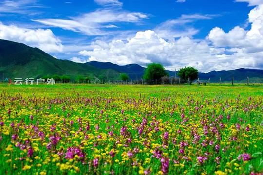 香格里拉的海拨是3300米,冬季漫长而寒冷。夏季的香格里拉草原上早已掀开了厚厚的冬衣,远山近水到处是一派生机盎然的景致,牧场上的各色野花开始争奇斗艳。