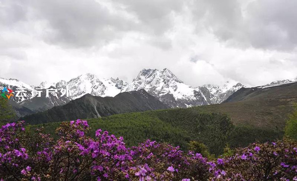 夏季的白马雪山同时还盛开着鲜艳的高山杜鹃花,这样就形成的洁白雪山与花海并存的美丽景观。