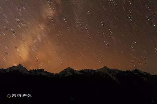 在雨崩事实上离雪山更近了,如果晚上没事情打发打发时间,则可以拍一组雨崩的星空大片。当然这除了良好的摄影技术,还需要天气的配合。