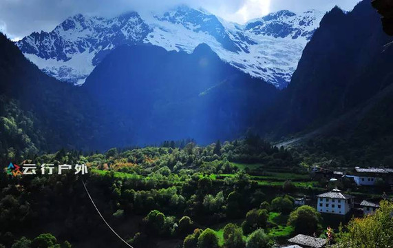 一道阳光照亮着雨崩村,让这个雪山下的小村庄,更加美丽迷人