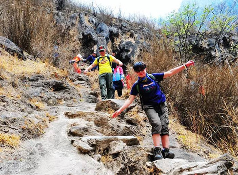 中虎跳峡(雨季不建议走)。从桥头镇进入虎跳峡景区大门后,还要驱车约半小时才有到达中虎跳峡,先是从张老师家小路开始徒步,这条路在网上也很有名,因为是张老师修的,所以过路是要给过路费的,现在由张老师的妈妈长期驻扎在口头收十元一个人的过路费。
