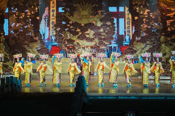 明清宫 苑里 精彩的表演之一便是《紫禁大典》,以紫禁城为主要背景的大型实景电影舞台剧,讲述从紫禁城建成至中华人民 共和 国成立,580多年间紫禁城历经的风霜雪雨。
