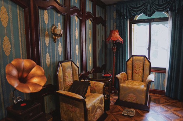 《老九门》新月饭店的拍摄地点是 横店 影视城 广州 街 香港 街取景,这里拍完电视之后也是作为酒店的主题房,仍旧在运营,房间很复古的感觉,还有服装提供,可以在酒店里拍照留念,整体的布局和布景和《老九门》里的一模一样。