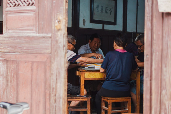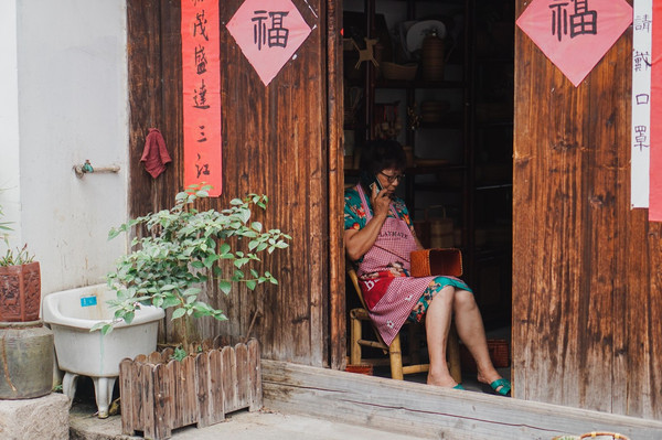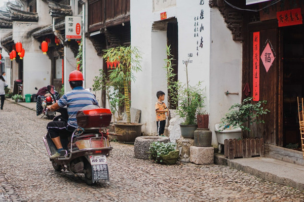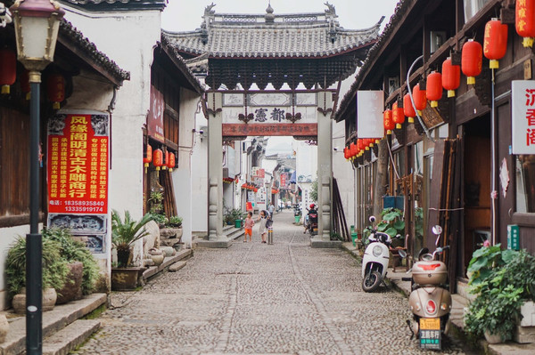 在进入卢宅之前,会经过一条不那么商业的“商业街”,其实很喜欢它的调性,没有很多游客,也没有喧嚣,有的只是整齐的建筑,幽静的古镇特色。