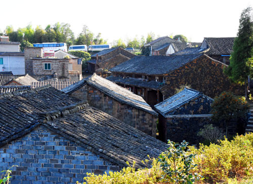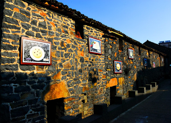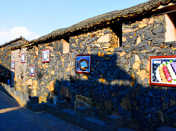 漫游乌石铺就的村中街巷,满目也是乌色的建筑,宅屋的墙是乌石垒砌起来的,连屋顶的瓦也是乌石铺设的。黑油油的岩石块、岩石片、岩石条,错落有致,线条粗犷。村子始建于唐武宗年间,距今已有1100多年历史。