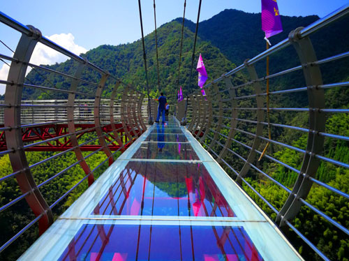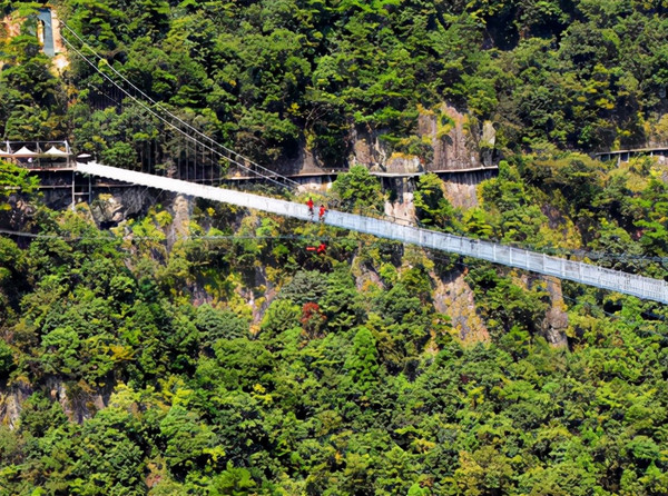 值得一提的是灵江源景区2018年初投资建造的华东第一高空玻璃桥,全桥跨度约365米,垂直高度约189米,桥面总宽2.8米。2019年,挑战吉尼斯记录--高空玻璃悬廊横空出世。
