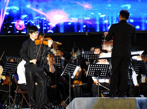 当天晚上,在金华磐安中学的操场上,绿色中国行走进浙江金华磐安大型公益活动的重要组成部分,《绿色中国放歌中国·首届绿色中国森林城市音乐会》在此举行。钢琴协奏曲《我爱你中国》作为第一个曲目,拉开了当晚《首届绿色中国森林城市音乐会》序曲的帷幕。