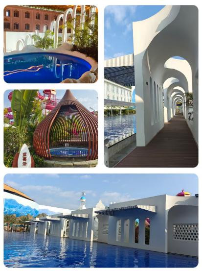 【芒市洲际柏丽酒店】:是一家温泉酒店,配备了室外泳池,大型游乐园,室外温泉,玫瑰池、天麻池、蓝莓池等十来个池子,住店客人送两张温泉券。