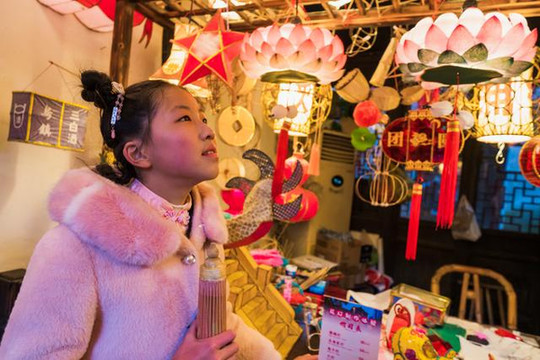 走过小桥流水,即见一处灯笼铺,店内外挂满各种灯笼,每一个灯笼都有着独特的形状和魅力,进入店铺内,可以选购自己喜欢的灯笼,亦可以DIY手制属于自己的灯笼,站在灯笼店铺内,满目的灯笼仿似锦里开芳宴,依楼似月悬。