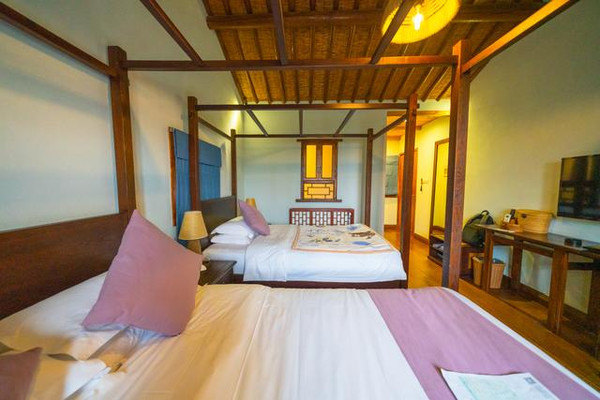 磨坊带着江南水乡特的有诗韵,又有些田园农家的纯朴,带着女儿入住家族房,一大一小的床摆放在房间里,卫生间采用温馨的江南装饰风格,台灯上的纸罩透着黄白色的光,舒适而温暖的房间让人感觉不到江南冬天的寒意。在乌村玩耍打闹疲惫的顽童们回到磨坊就像回到家一样。