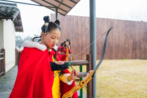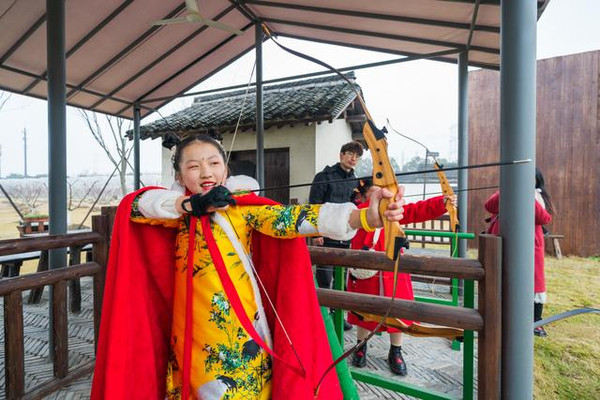 参加完小猪赛跑即可到不远处的运河边上的射箭体验场内体验射箭,射箭场的箭分成人和儿童(14周岁及以上),可以亲子互动,一家人愉快地比一比谁的箭法高。