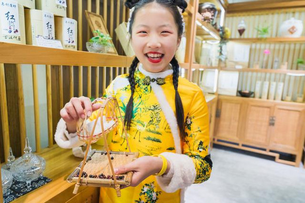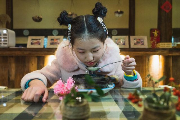 女儿开心地说:我也吃口“定胜糕”,争取事事都能努力到胜利结局。