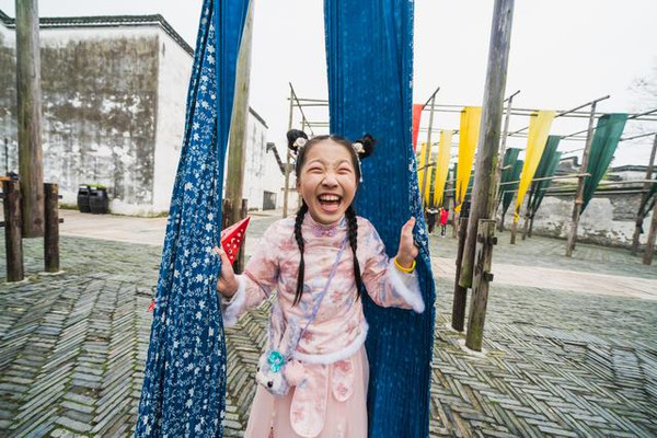 走进西栅,本是漫无目地,突然看到染布坊,这是女儿最喜欢的地方,或许,对传统古法染布的手工艺有着与生俱来的喜爱。在冬日里那晾晒的布依旧受到游客的追捧和喜爱,这种用靛蓝为主要颜色的古法染布工艺,在西栅内成为一道靓丽的风景区。周边的店铺卖有扎染的衣服和用品,每一款都诉说着手艺人的前世今生,那一道道靛蓝染就的花纹充满古朴的诗意,诠释着田园闲时的当下岁月。