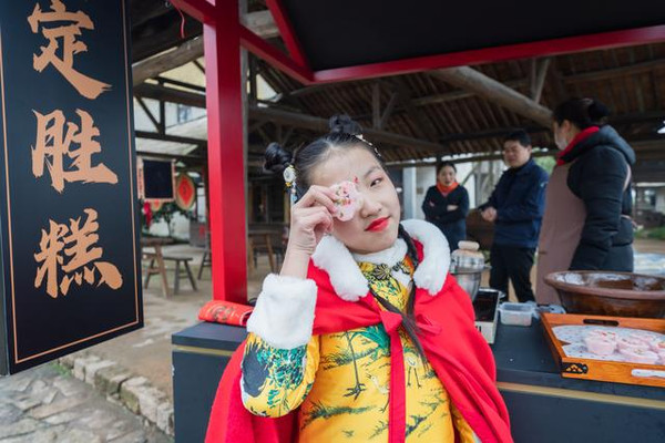 打年糕摊位旁边摆放着一个“定胜糕”的摊位。