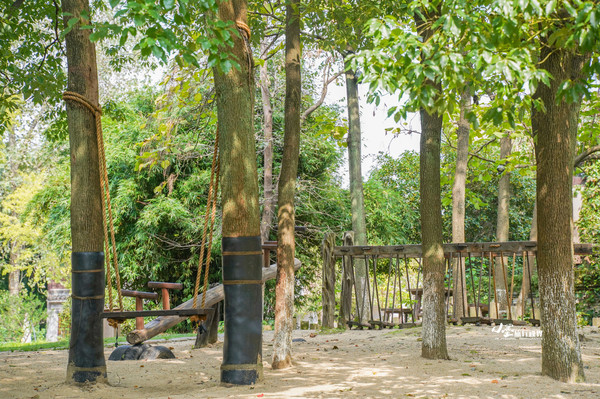 如果是不爱运动的人,也可以来乘一会儿秋千。头顶是层层叠叠的树叶,阳光似乎都被滤成了绿色。徐徐凉风吹过,秋千晃晃悠悠,闭上眼睛打一个盹,梦里有 江南 最好的秋天。