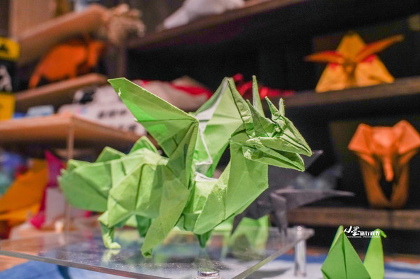 一楼陈列着许多折纸作品,在此之前我从未想过一张纸居然能变出如此多的花样。前台小姐姐看我感兴趣,笑着跟我说如果我想试试的话,能把这些小动物的制作者请出来给我当老师。