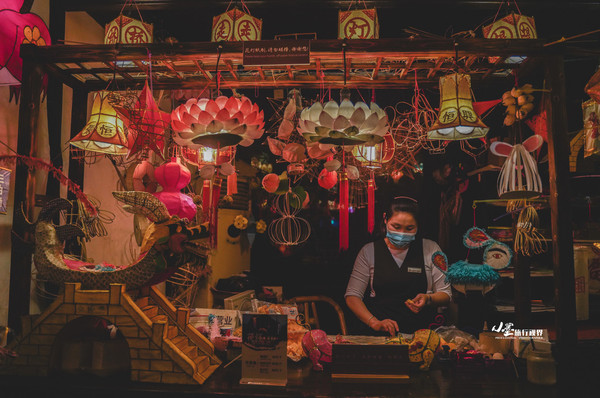 路过一家专做花灯的小店,忍不住驻足良久。老板娘的手巧得令人惊叹,她用纤细的竹丝编出花灯的骨架,又细致地为其蒙上纸,描上颜彩。仅是一盏荷花灯,就需要用竹丝手工编出几十片花瓣的框架,再将它们缀连起来,更不消说工序复杂的龙灯。