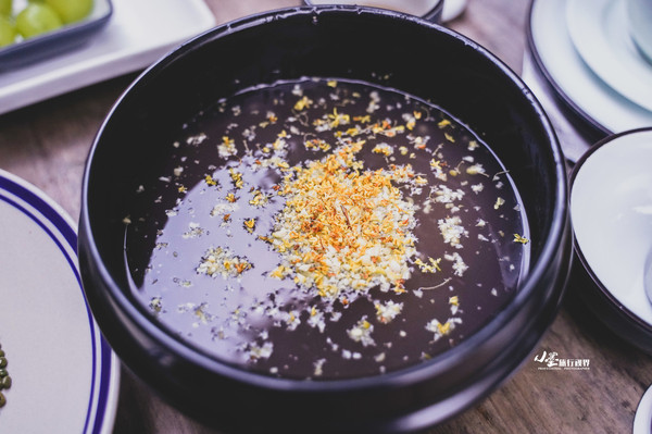 板栗羹上撒一把今年新采的桂花,入口桂香绵密,羹水顺滑。