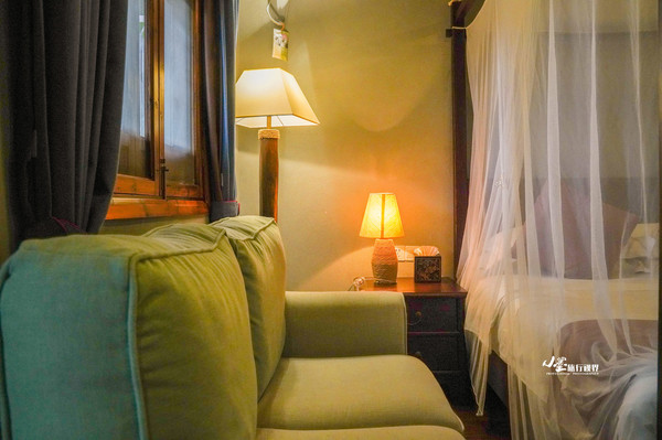 房间内复古典雅,适合下雨的时候坐在沙发上,拧亮台灯,就着昏黄的灯光细细读一本书。