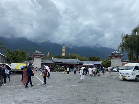 目的地是天龙八部影视城,但我们先经过了崇圣寺三塔。几个人都没有要求下车,只是在车里拍了几张照片。紧接着就去了影视城。