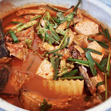 这一天起床就很晚了。中午直接去了一家不是很知名的饭店吃饭。我们去的老毕鱼庄。是在一个院子里面。里面就是酸辣鱼,加了好多豆腐还有洋芋,很好吃。