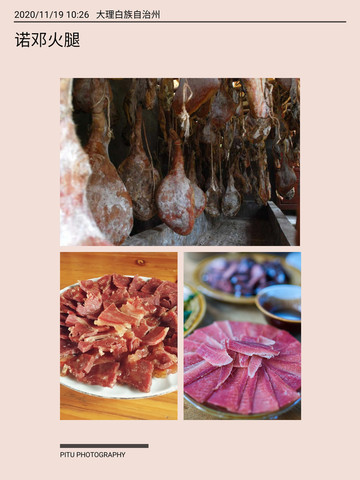 大理古城的段记土特产店的火腿比较好吃,均来自诺邓古村,火腿用当地的井盐腌制三年而成,口感鲜美,咸淡适中,香而回甜,回味悠长。价格也合适,进店可免费试吃。