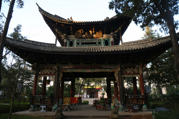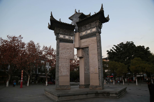 12月6日结束怒江行程,7日上午计划七点一刻出发,我因晨跑后又去攀爬老姆登山而迟到了几分钟。从老姆登到大理巍山古城500公里左右,途经服务区时做了短暂的停留,吃饭或休息,全程耗用10个小时,下午6点到达时即将日落,入主蒙化宾馆,放下行李后,开始徒步古城。