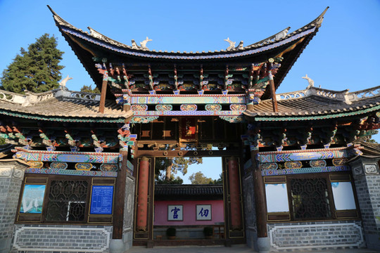 巍山古城文物古迹荟萃,风景名胜众多。拱辰楼位处北城,建于明洪武年间,为五间重檐歇顶式古老建筑,南面挂“魁雄六诏”、北面挂“万里瞻天”横匾,气势雄伟。星拱楼作为“印柄”的文笔楼,位于古城中心,命途多舛,始建于明洪武二十三年,倾圮后修复于清雍正十年,1857年毁于兵燹,现在所见为清代杜文秀起义军大参军马忠国重修。城楼四向贯通,是东西南北街的中心交点,为重檐歇山顶,东南西北四面檐下分别悬挂“瑞蔼华峰”、“巍霞拥鹤”、“玉环瓜浦”、“苍影盘龙”匾额,檐牙高挑,挺拔俊秀。