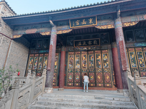 第二个来到了福建会馆,会泽第一中学旁边,进去一看又是一个巨大的停车场,古建依然是新近培修过,也依然是几位老人在门口抬杆。