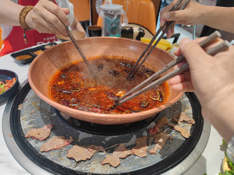 从唐继尧的故居出来,我们来到了一家叫富源铜锅牛肉的餐厅,这家餐厅的神奇之处在于,上面吃火锅,周边可烤肉,很神奇,味道也不错,推荐哦!