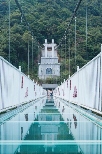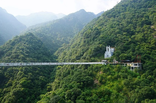 高空玻璃桥:自云门山望君台直通对面的险峻山峰,横跨百米峡谷的这座高空玻璃桥是广东省规模NO.1的全透明高空景观玻璃桥。