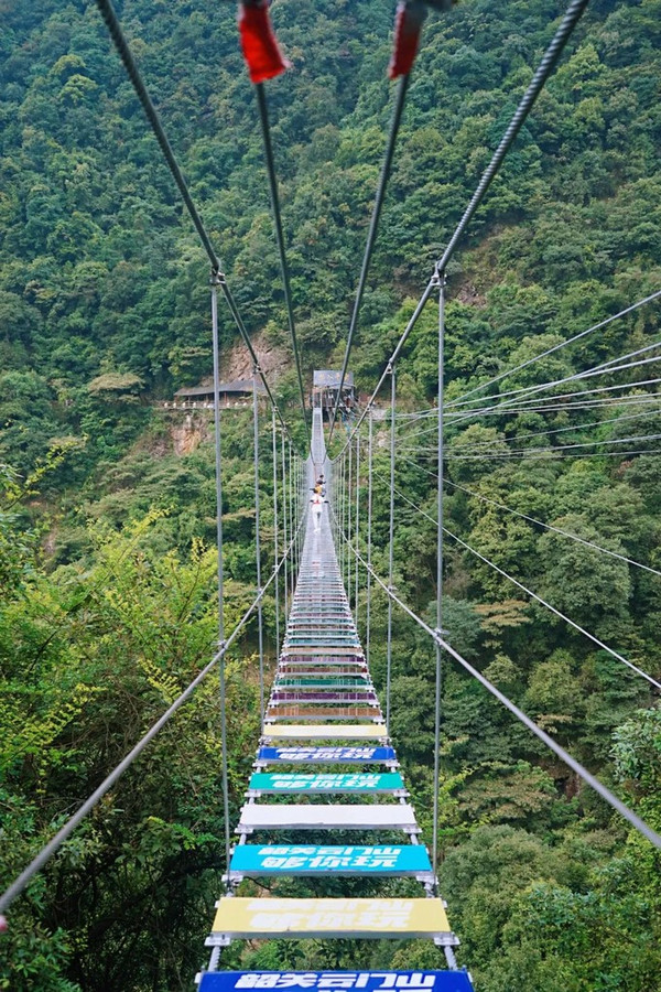 自云门山望君台直通对面的险峻山峰,横跨百米峡谷的这座高空玻璃桥是广东省规模NO.1的全透明高空景观玻璃桥。