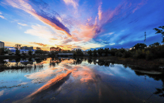 鹿鼎山的如画秋色,是桦树林中877级台阶的登山“仙”路、是远眺时从眼前蜿蜒流过的壮美呼玛河、是逐渐泛黄的树叶里透过的一米阳光、是沿湖栈道的清新空气、是颜如玉明如镜的湖面和被湖面轻轻抓住的云之倒影……