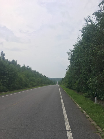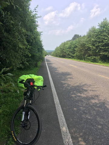 随着时间的延长,刚开始的愉悦一扫而光。原以为这个方向应该是下坡多上坡少,结果恰恰相反,几乎全是上坡。小兴安岭山不高,坡度较缓,但距离长,最长的坡在5公里以上。更后悔的是带的水少,沿途根本没有人家,更不要说商店饭店。中途没有机会补充粮草了,就这样带着疲惫爬过一个又一个山坡。