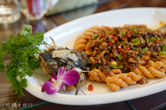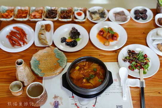 用餐推荐到上官地村的“御膳房”,餐厅门口还有一个特别精致的小花园,在这儿可以品尝到当地特色菜肴,非常有仪式感,别忘记尝尝御膳田石板米哦!