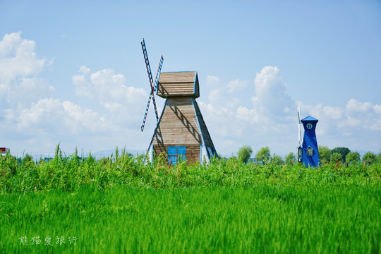 一望无际的诗意稻田,小桥流水浪漫风车,木质景观栈道和网红玻璃栈道,漂浮于稻田之上的云朵,徜徉于云水之间的小船……这里是与南京玄武湖同名的牡丹江宁安玄武湖,曾经渤海国时期的皇家后花园,如今仿若江南水乡一般,风吹稻浪,诗情画意。