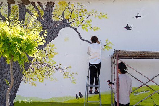 如果时间充裕,推荐在这里小住几日,上官地村新打造的精品民宿,住在民宿里就可以眺望稻田风光。村里还特别请了美院的老师在墙壁上画画,处处是风景。院落外有的民宿院落还将玄武湖水引入,榻榻米式的卧室,很有当地风情。