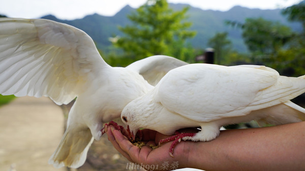 门口进入的区域附近有飞鸽表演,每天有四场,下午15:00是最后一场,非常有意思,听话的白鸽听到哨音会从笼中飞出,盘旋空中,还可以自己来喂一把哦。